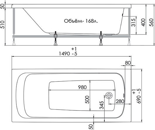 Акриловая ванна 1ACReal Gamma 150x70 - арт. BBA-GA157X0-00U.