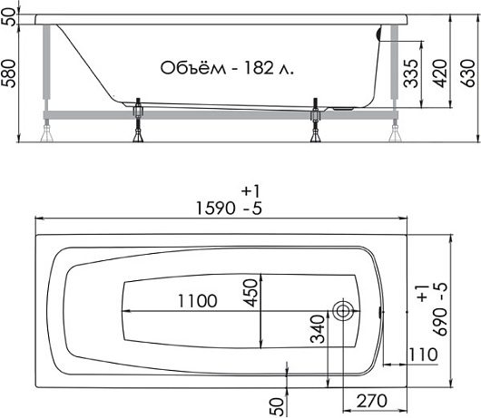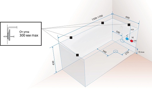 Акриловая ванна 1ACReal London 160x70 - арт. BBA-LN167X0-00U.