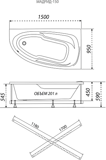1ACReal Акриловая ванна Мадрид 150x95 L