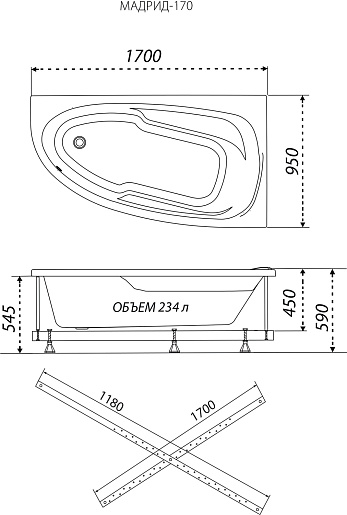 1ACReal Акриловая ванна Мадрид 170x95 L