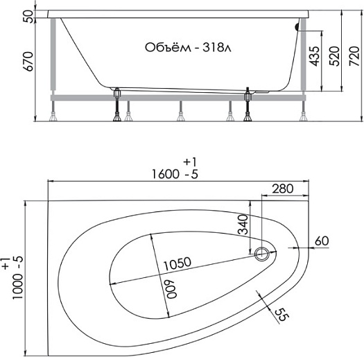 Акриловая ванна 1ACReal Marseille 160x100 R - арт. BBA-ME161X0-00R.