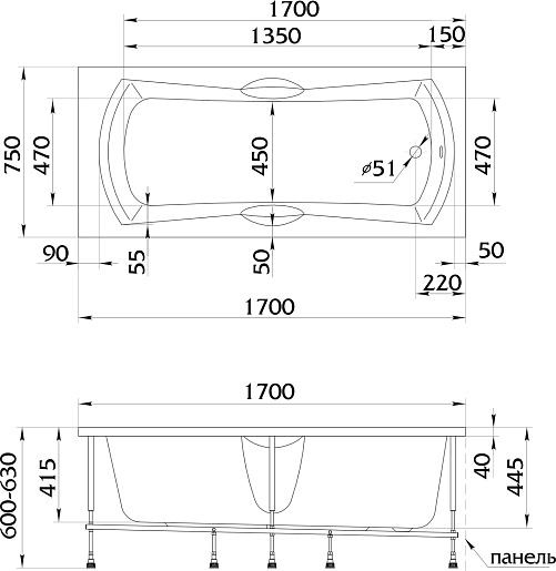 В комплекте: ванна.