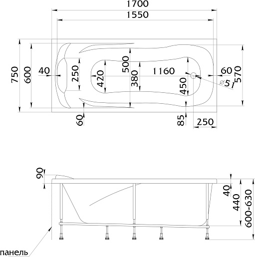Акриловая ванна 1Marka Calypso 170x75 - арт. 01каи1775.