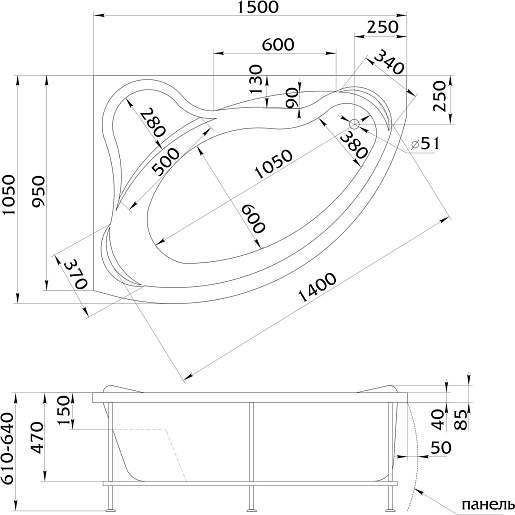 Акриловая ванна 1Marka Catania 150x105 L - арт. 01кт1510л.