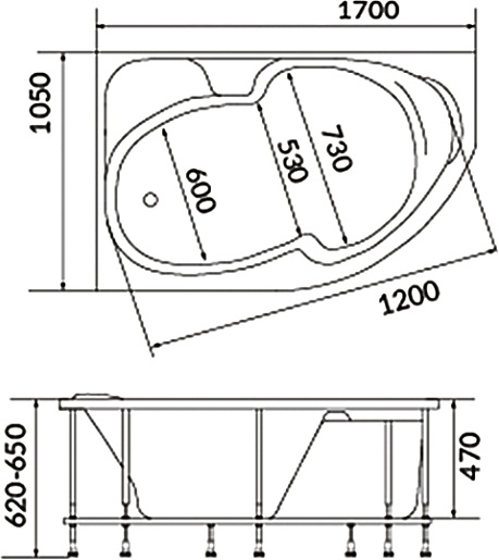 Акриловая ванна 1Marka Diana 170x105 R - арт. 01ди1710п.
