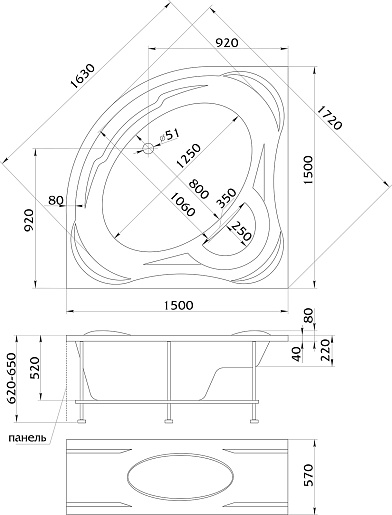 Акриловая ванна 1Marka Palermo 150x150 - арт. 01па1515.