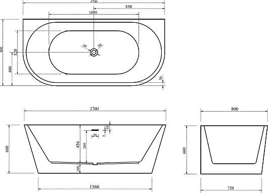 ABBER Акриловая ванна AB9216-1.7 170x80