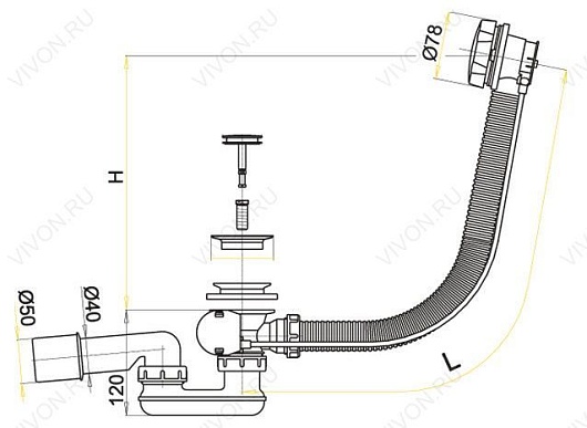 Aessel Слив-перелив для ванны Aessel АВС 100 см (хром)