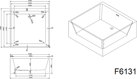 Отдельностоящая акриловая ванна Frank F6131 150х150 white - арт. 12528.