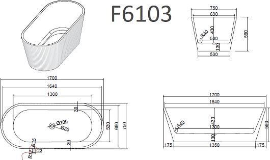 Отдельностоящая акриловая ванна Frank F6103 170х75 white - арт. 12513.
