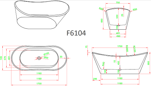 Отдельностоящая акриловая ванна Frank F6104 170х75 black/white - арт. 12516.