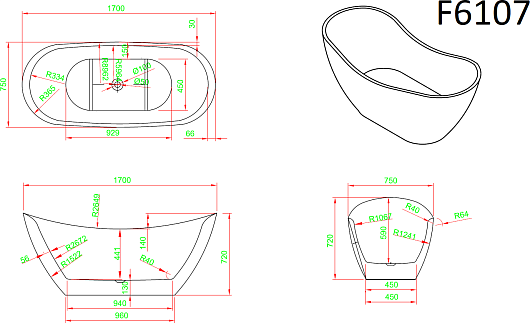 Отдельностоящая акриловая ванна Frank F6107 170х75 white - арт. 12519.