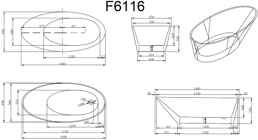 Отдельностоящая акриловая ванна Frank F6116 178х85 white - арт. 12522.