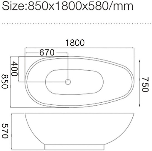Отдельностоящая акриловая ванна Frank F181 180х85 обсидиан - арт. 12512.