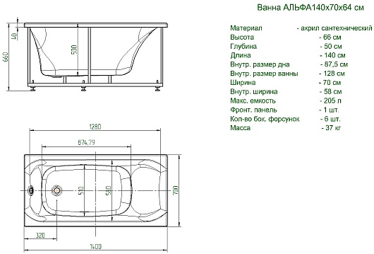 Комплектация: ванна, каркас, фронтальный экран, слив-перелив.