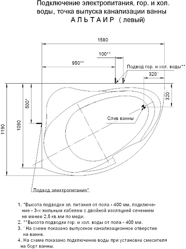 Акриловая ванна Aquatek Альтаир L - арт. ALT160-0000067.