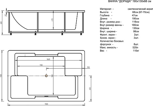 Акриловая ванна Aquatek Дорадо 190x130 с экраном - арт. DOR190-0000002.