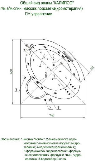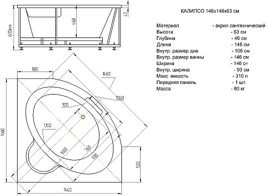 Акриловая ванна Aquatek Калипсо 146x146 - арт. KAL146-0000045.
