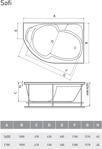 Акриловая ванна Relisan Sofi 160x100 R - арт. Гл000023832.