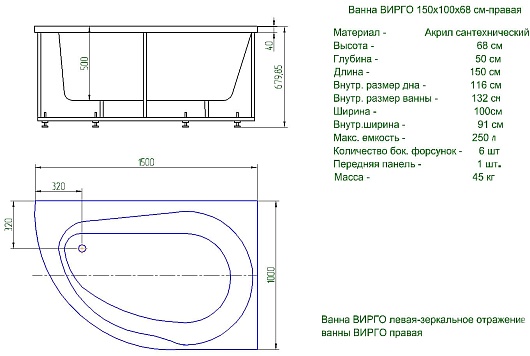 Комплектация: ванна, каркас, фронтальная панель, слив-перелив.