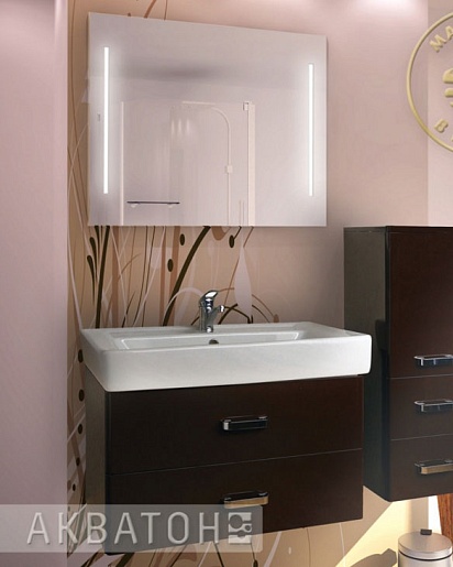Комплектация: влагостойкое зеркало, два встроенных светильника. Система подогрева ANTI-STEAM предотвращает запотевание зеркального полотна.