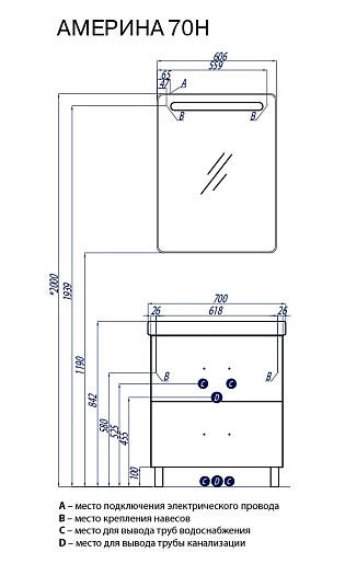Тумба-умывальник «Америна 70 Н» - арт. 1A169301AM950