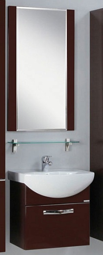 Описание: влагостойкое зеркальное полотно с декоративными планками шоколадного цвета из ЛДСП. Навесы в комплекте.