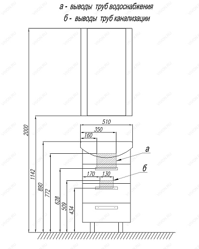 Комплектация: три выдвижных ящика с шариковыми направляющими, в верхнем ящике расположена система хранения. Корпус из глянцевого ЛДСП, фасады — МДФ (глянец), хромированая фурнитура, фаянсовая раковина "Смайл 50".