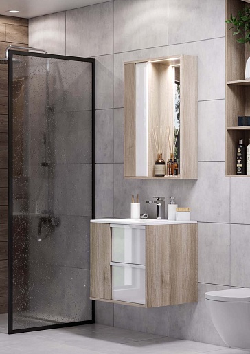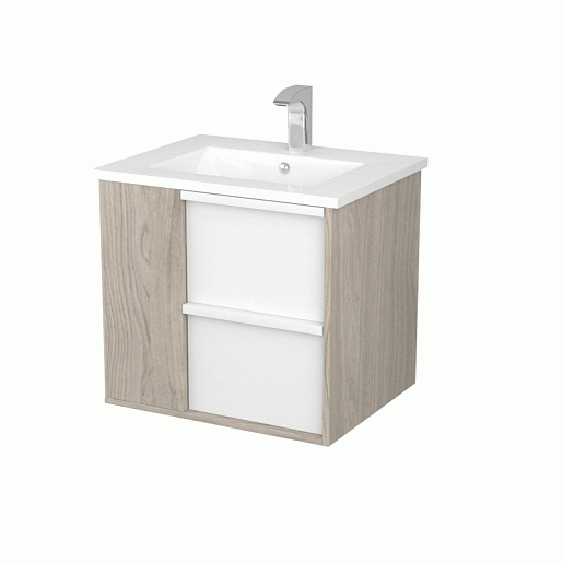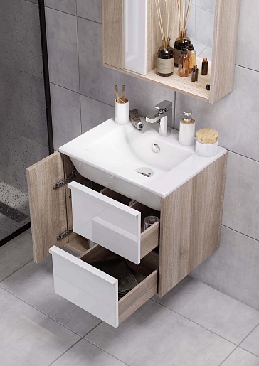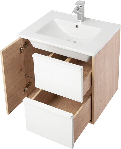 Тумба под раковину Бостон 60 белая глянцевая, дуб эврика