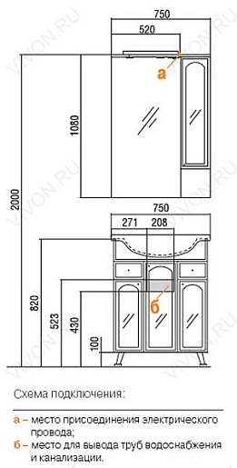 - Зеркало-шкаф Акватон Эмилья 75 L: светильники галогеновые - 2 шт., трансформатор - 1 шт., выключатель - 1 шт., ручка - 1 шт., розетка - 1 шт., полки - 3 шт.