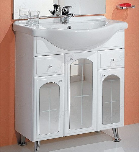 - Тумба с раковиной Акватон Эмилья 75: раковина Аквалайн 75, ручка - 5 шт., ящики - 2 шт., полки - 3 шт., ножки - 4 шт.