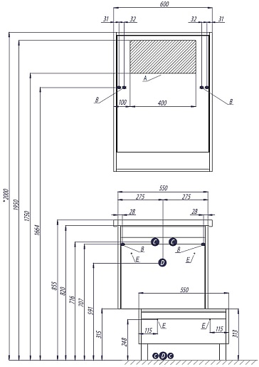 - Подвесной монтаж.