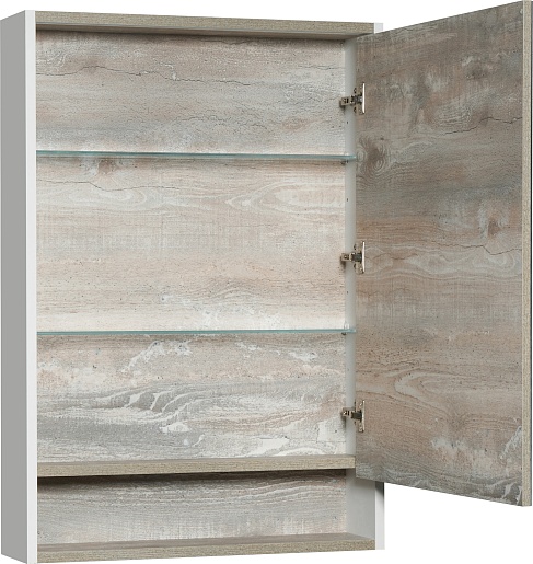 Зеркальный шкаф Акватон Капри 60 - арт. 1A230302KP010. Модель оборудована встроенной подсветкой и двумя внутренними стеклянными полками. Комфорт и удобство при использовании гарантируют направляющие с доводчиками и интегрированная система плавного закрывания.
