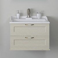 Комплектация: усиленный подвесной кронштейн - 2, ящик с интегрированными доводчиками - 2, ручка (керамика, бронза) - 2, раковина "Фабиа 800" (арт. 1A708031FB010) - 1.
