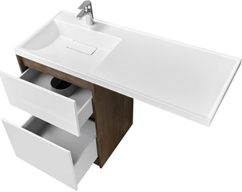 - Верхний ящик открывается с помощью системы push-to-open, а нижний - за фасад с помощью удобного выпила под углом.