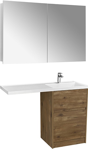 Комплектация: тумба (корпус), фасад (2 шт.), раковина, зеркальный шкаф, крепления.