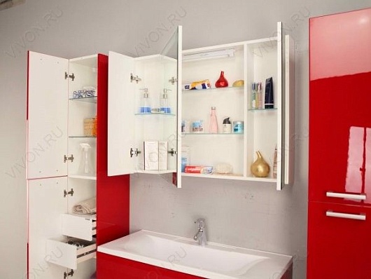 Комплектация: зеркальные распашные дверцы, стеклянные полочки с полкодержателями, встроенный светильник.
