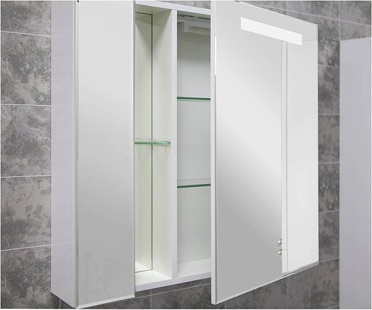 Комплектация: навесы - 2, петли с доводчиками - 5, фасад - 2, стеклянная полка - 5, светильник - 1.