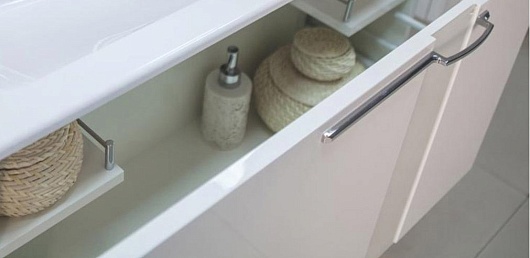 Комплектация: усиленный подвесной кронштейн - 2, ручка - 1, ящик на направляющих плавного закрывания - 1, раковина "Тина 800" арт. 1A710931TI010.