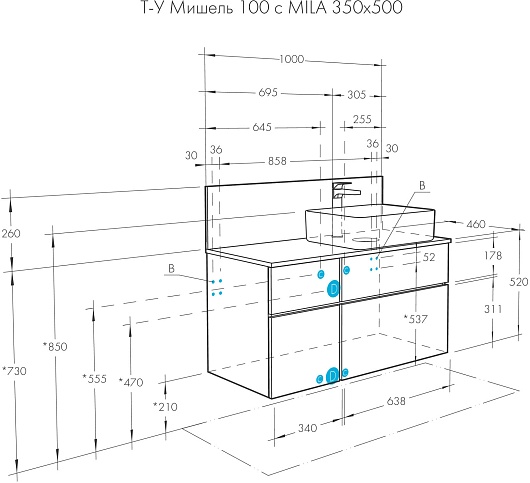 Тумба с раковиной Акватон Мишель 100 - арт. 1A244101MIX40 / 732700B000 / 1A277103MIX40.