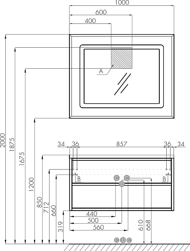 - Размеры ШxГxВ: 1000x32x800 мм.