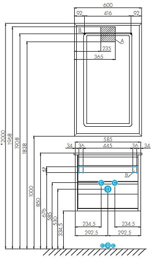 - Размеры ШxГxВ: 600x32x1000 мм.