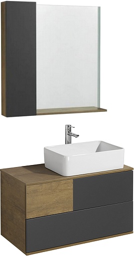 Акватон Мебель для ванной Терра 85 дуб кантри/антрацит с раковиной Mila