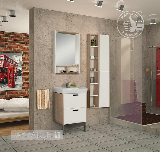 Акватон Мебель для ванной "Йорк 55" белый/дуб сонома
