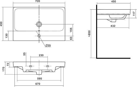 Мебельная раковина Акватон Адриана 70 - арт. 1WH501628.