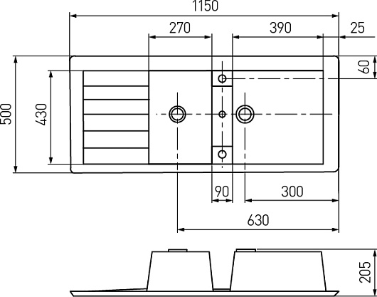 - Комплектация: выпуск / донный клапан / перелив / сифон