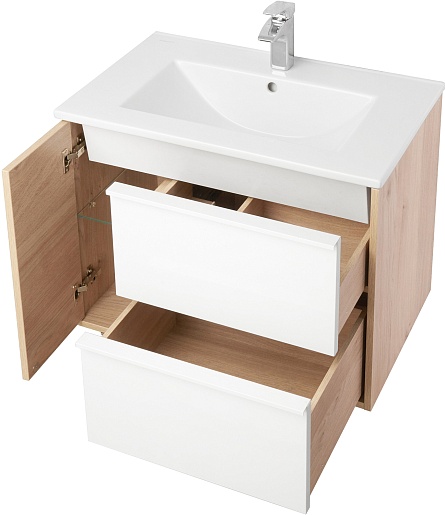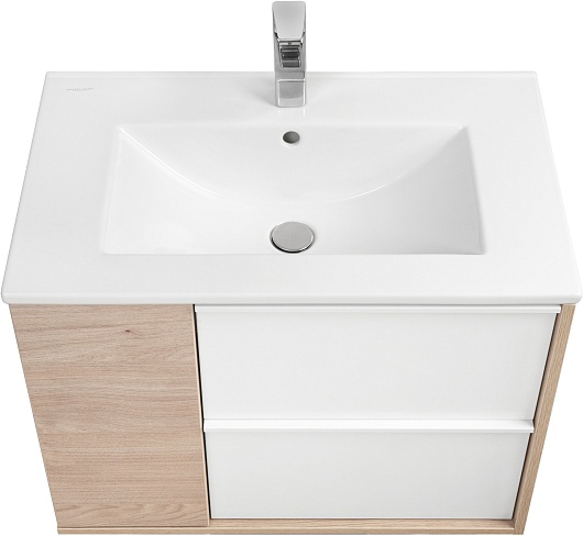 Акватон Тумба под раковину Бостон 75 белая глянцевая, дуб эврика