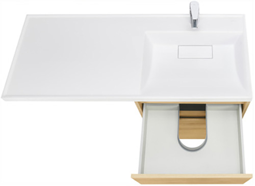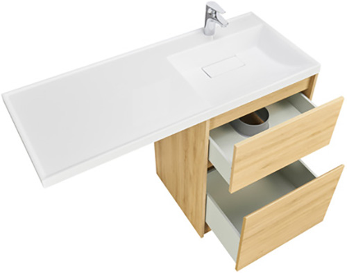 - Верхний ящик открывается с помощью системы push-to-open, а нижний - за фасад с помощью удобного выпила под углом.