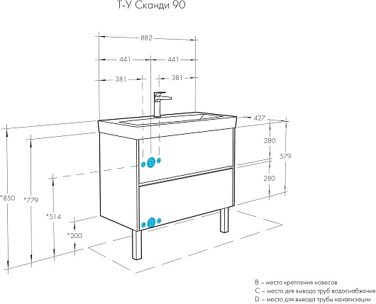 Тумба под раковину Акватон Сканди 90 - арт. 1A251901SD010.