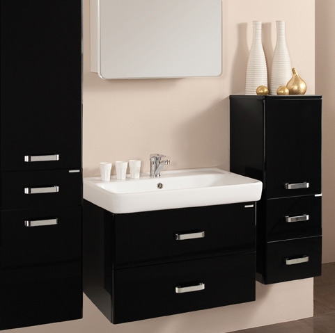 Комплектация: фаянсовая раковина Santek Тигода 80 (арт. 1WH302084), два выдвижных ящика, верхний из которых имеет систему хранения. Корпус и фасады из глянцевого ЛДСП.